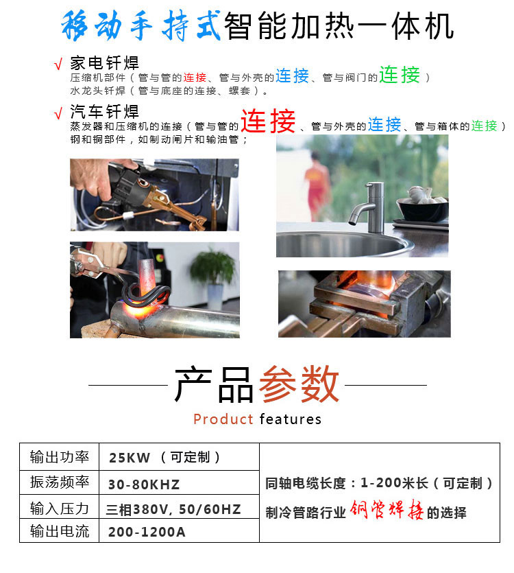 别名Q高频感应加热设?/br> 型号QHT-SC-40-A ?sh)压Q?80V 功率Q?0-40kw 用途:(x)手持式高频加热机的主要用?、材料焊接,多用于多U材料的焊接Q如金属、铝、铜、不锈钢、铁{钎焊?、热处理Q多用各c金属^面表面淬火退火去应力{热处理工艺?/br>